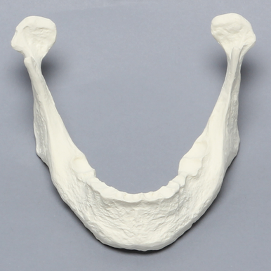 Bone simulation product. Source reference: https://sawbones.com/products/mandible-with-teeth-indentations.html